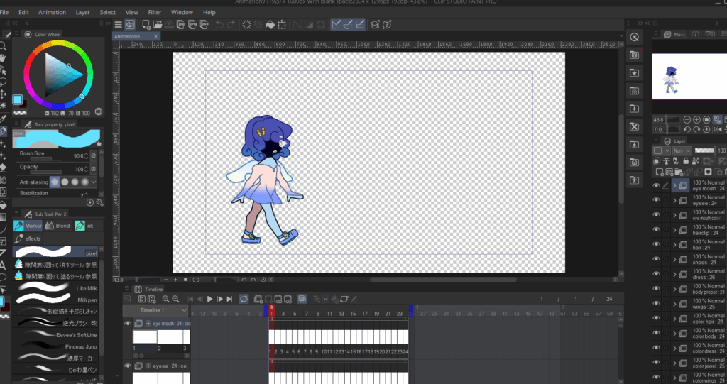 Den Charakter habe ich dann in Clip Studio Paint Pro animiert und diese Frames mit dem Hintergrund in Adobe After Effects zusammengeführt.