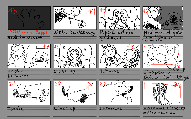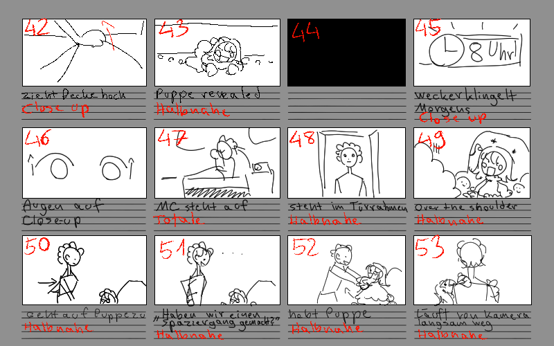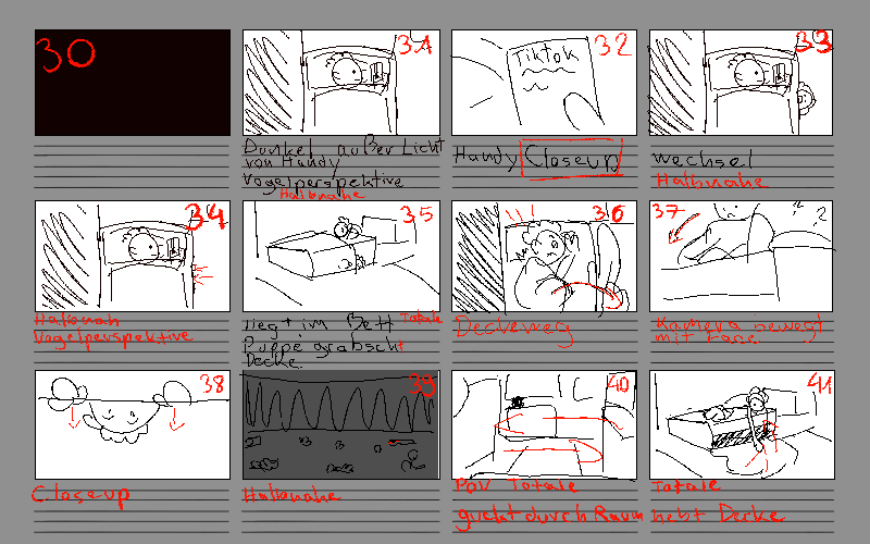 Im Fach Video und Film sollten wir in einer Gruppe einen Kurzfilm produzieren, dazu habe ich ein Storyboard mit den Gruppenmitgliedern ausgearbeitet.